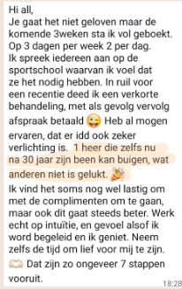 Ze stapte in met onzekerheid en twijfels over zichzelf, nu heeft ze een praktijk die al 3 weken volgeboekt is. Haar exacte woorden waren:
